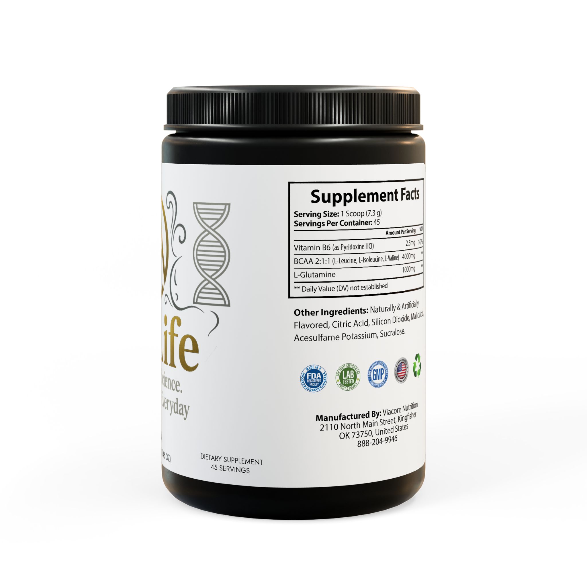 Ingredients: Vitamin B6 (as Pyridoxine HCl), BCAA 2:1:1 (L-Leucine, L-Isoleucine, L-Valine), L-Glutamine. Other Ingredients: Naturally & Artificially Flavored, Citric Acid, Silicon Dioxide, Malic Acid, Acesulfame Potassium, Sucralose.